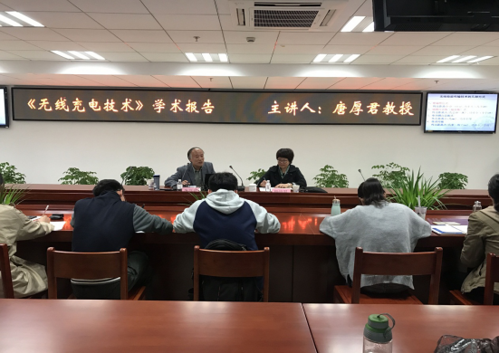 2017年11月7日下午14点,上海交通大学电子信息与电气工程学院电气工程系唐厚君教授在图书馆616会议室给16 和17级研究生进行一场关于《无线充电技术》的学术报告。本次讲座由beat365正版唯一官网党委书记杨幼君老师主持。