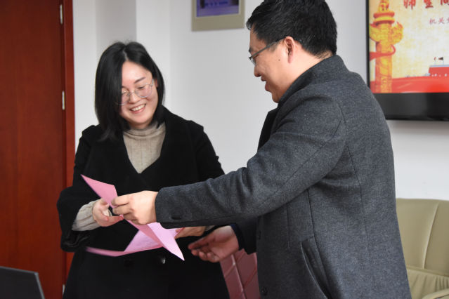最后,机关第九党支部书记、党委研工部部长马慧民对本次结对共建仪式进行总结,并对研究生党员寄予三点希望:不忘初心,坚守科研诚信底线;以高标准严要求努力提升科学素养;传承科学精神,脚踏实地,勇于创新。(张鑫,付晓琳)