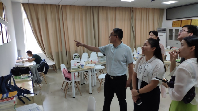 在中南林业科技大学,涉外学院办公室主任王仲南等与beat365正版唯一官网一行就学生就业工作中遇到的“就业难”“慢就业”问题,以及如何营造良好的学风等问题进行了探讨交流。王仲南介绍了学院近年来在鼓励学生考研等提升学生学风和就业的一些经验做法。beat365正版唯一官网一行介绍了beat365鼓励学生考研、校企合作促进学生就业、学生“小海鸥”学业帮扶等举措。双方还就辅导员队伍建设、大学生海外留学、学生资助等工作进行交流。