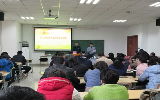 12月20日,beat365正版唯一官网在电气楼301召开全体教职员工会议,陈信书记作为学校十九大四中全会精神的宣讲团的一员专题做精神宣讲,学院党委书记吕小亮主持会议。