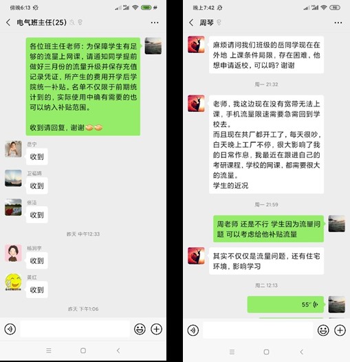 在前期的排摸中,同学们对开展网课教学反映最多的是网络拥堵和流量问题。据统计,学院2008名本科生中有199名同学存在网络流量和网速问题。针对这部分学生,考虑到个别学生家中无宽带,或身处偏远地区,或滞留在外,学院对他们发放手机流量专项补贴,支持学生网课学习顺利开展。