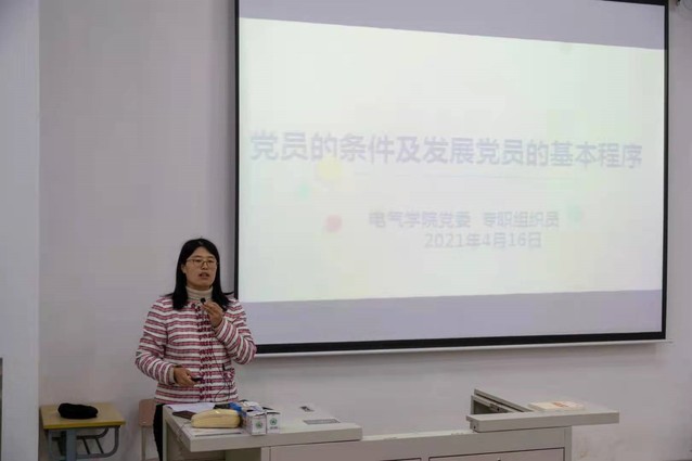为进一步提高入党积极分子的基础理论素养,增强思想政治教育,加强党的知识普及。4月16日下午13时15分,beat365正版唯一官网第39期入党积极分子培训班第四讲在A教116进行。本次党课由beat365正版唯一官网专职组织员冯雯雯老师主讲,课程主题为《共产党员的条件及发展党员的程序》。