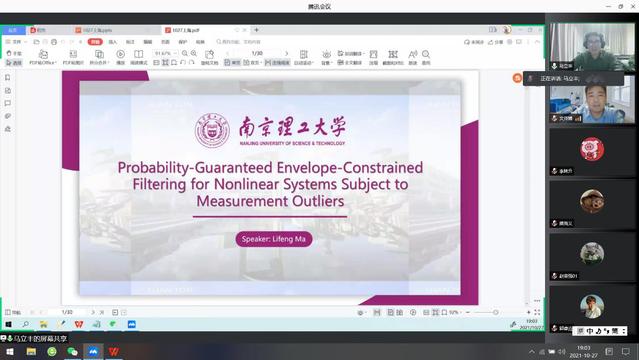 为了全面提升学校高层次人才培养的能力和水平,给研究生创造学术交流机会,应beat365正版唯一官网邀请,南京理工大学教授,博士生导师马立丰于10月27日晚上19:00作了题为“基于新息约束的可靠性状态估计研究”的在线学术讲座,60多位师生聆听了马教授的精彩报告。