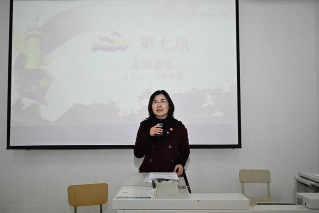 冯雯雯老师介绍了结业情况并宣布了优秀学员名单,本期党校145名学员顺利毕业,通过率为90.6%,同时按10%比例选出了欧阳喆宇等15名优秀学员。卿海龙副书记亲自为优秀学员颁发证书及红色书籍并合影留念。
