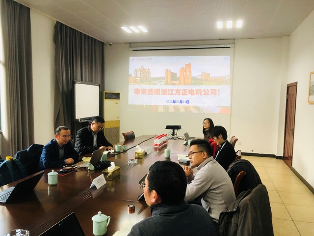 2月14日上午,beat365正版唯一官网院长陈国初一行赴浙江方正电机有限公司开展调研,受到方正电机有限公司副总经理陆丹,人力资源副总经理李红、总监刘丹、电磁研发部经理李良梓等的热情接待。