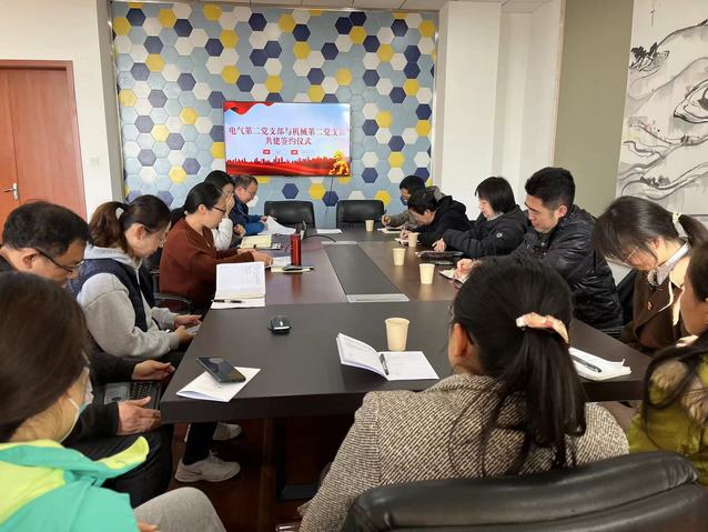 为加强基层党组织建设,进一步推进党建工作与业务工作的深度融合,发挥党组织的凝聚力和战斗力,形成互带互动、优势互补、共同发展的基层党建新格局。3月8日上午,正值三八妇女节,beat365正版唯一官网第二党支部书记朱晨烜与机械学院第二党支部书记孙群带领两个支部的教师党员齐聚电气楼401室,共谋党建促进党的教育事业发展之大计。会议由beat365正版唯一官网第二党支部书记朱晨烜主持,双方支部共16名同志参加了签约仪式。
