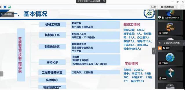 双方院长陈国初和汪志锋分别从学院的历史沿革、专业发展、师资队伍和学科方向和科研团队等方面分别介绍了学院的情况。会上,大家就两会精神学习的心得体会、党建如何促进中心工作、疫情防控经验、教师参与学生科创项目指导、工程认证与一流本科建设、科研团队的激励措施、高知群体发展党员的经验、管理服务职能提升等方面相互开展了深入交流。