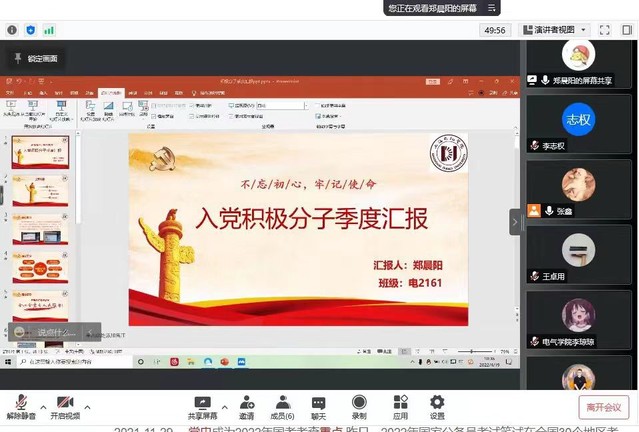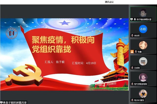 第八党支部4月19日通过线上召开入党积极分子季度汇报暨培养考察专题会议,会议听取了本季度入党积极分子的综合表现、思想成长收获及学习体会,鼓励大家结合当下的疫情防控的紧张局面,积极投身疫情防控志愿者队伍,在实际的志愿服务中彰显入党的决心。
