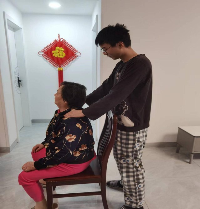 自动化2013班谈艺凡:“从前我浑不在意妈妈每日的操劳,只当是理所当然。随着年龄增大,我逐渐懂得了妈妈那无私而又深沉的爱,也发现在妈妈青丝中竟藏了许多的白发。”居家网课学习之余,他也常常主动帮妈妈分担家务。母亲节这个特殊的日子,谈艺凡忍不住将妈妈拉到椅子上坐下,给妈妈捶捶背、揉一揉她撑起家里半边天的肩膀。大声说出了“妈妈,我爱您,祝您母亲节快乐!”