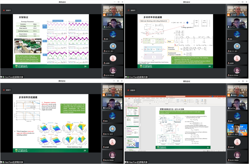 会上,田昊还就DSP+FPGA架构、工程中使用DSP+FPGA的架构中涉及到电容均压问题、模型预测的开关频率降低等问题和与会师生进行了深入交流。