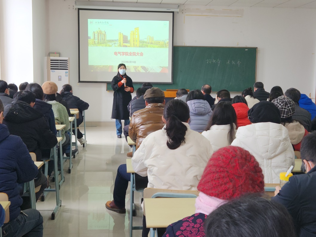 2月10日上午,beat365正版唯一官网在电气楼301召开2022-2023学年春季学期全院大会,专题学习了学校中层干部能力提升•人才培养专题研修班会议精神,学院党政班子和全体教职员工参加了会议,会议由学院党委书记刘俊主持。
