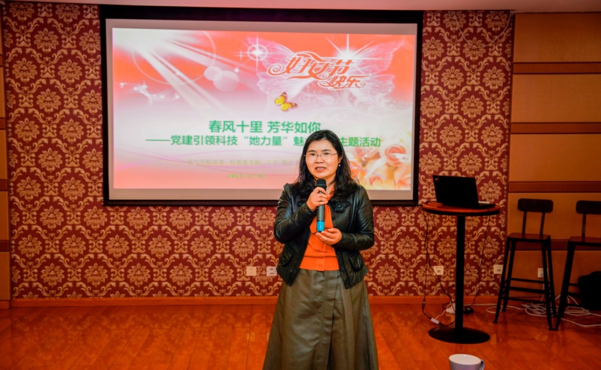 党委组织部部长吴美华致贺词,向女同胞们致以节日的问候和崇高的敬意。她深情地讲到,学校的发展,离不开兄弟高校、企事业单位教育工作者和科技工作者们的支持,更凝结着学校女教工的辛勤耕耘与无私奉献。她深情地回顾了2022年度女职工助力学校在疫情防控、三全育人、科研创新、质量党建等领域内取得的成绩,同时指出在深入学习贯彻党的二十大精神之际,学校党委聚焦 “中国特色、上海优势、临港模式、电机品牌”,提出加快建设全国示范应用技术大学的发展目标,走最开放、最临港、最产教融合的发展道路,需要不断增强基层党组织的政治功能和组织功能,推动党建与事业发展深度融合,以高质量党建引领学校高质量发展。以党建引领,深入推进产教融合,携手科技“她力量”,共同搭建协同育人共同体,讲好新时代劳模工匠的成长奋斗故事,用劳模工匠精神擦亮新时代奋斗者的底色,用新思维塑造新时代女性的新形象。