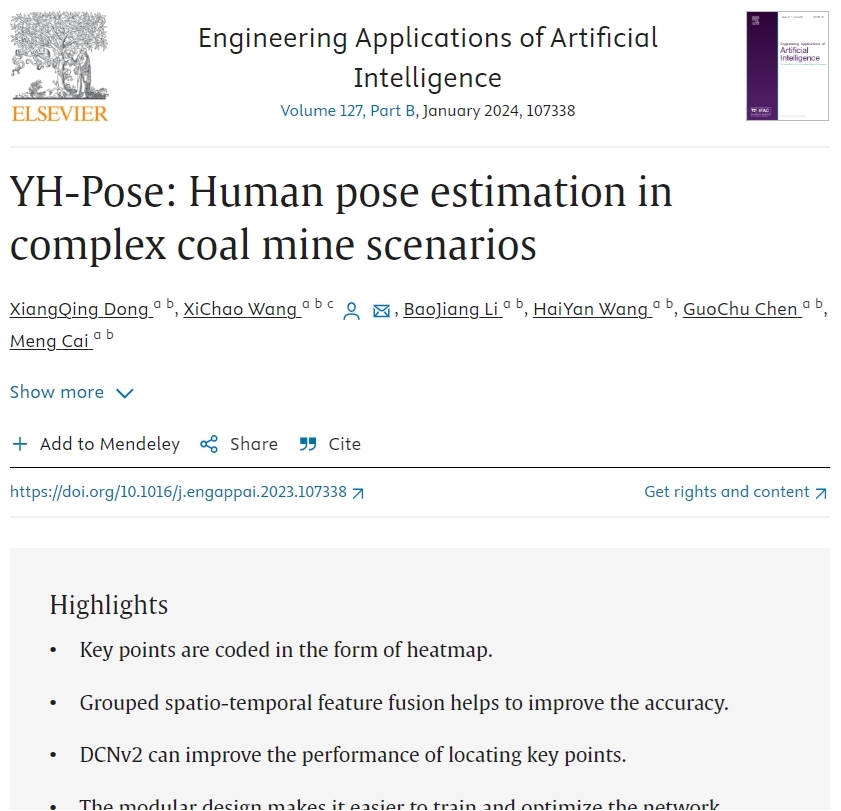近日,beat365正版唯一官网智能决策与控制技术研究团队在人工智能领域重要期刊Engineering Applications of Artificial Intelligence(IF 8.0,中国科学院二区Top期刊)上发表了题为“YH-Pose: Human Pose Estimation in Complex Coal Mine Scenarios”的学术研究论文。硕士研究生董祥庆为论文第一作者,王西超老师为论文通讯作者,我校为论文第一单位。