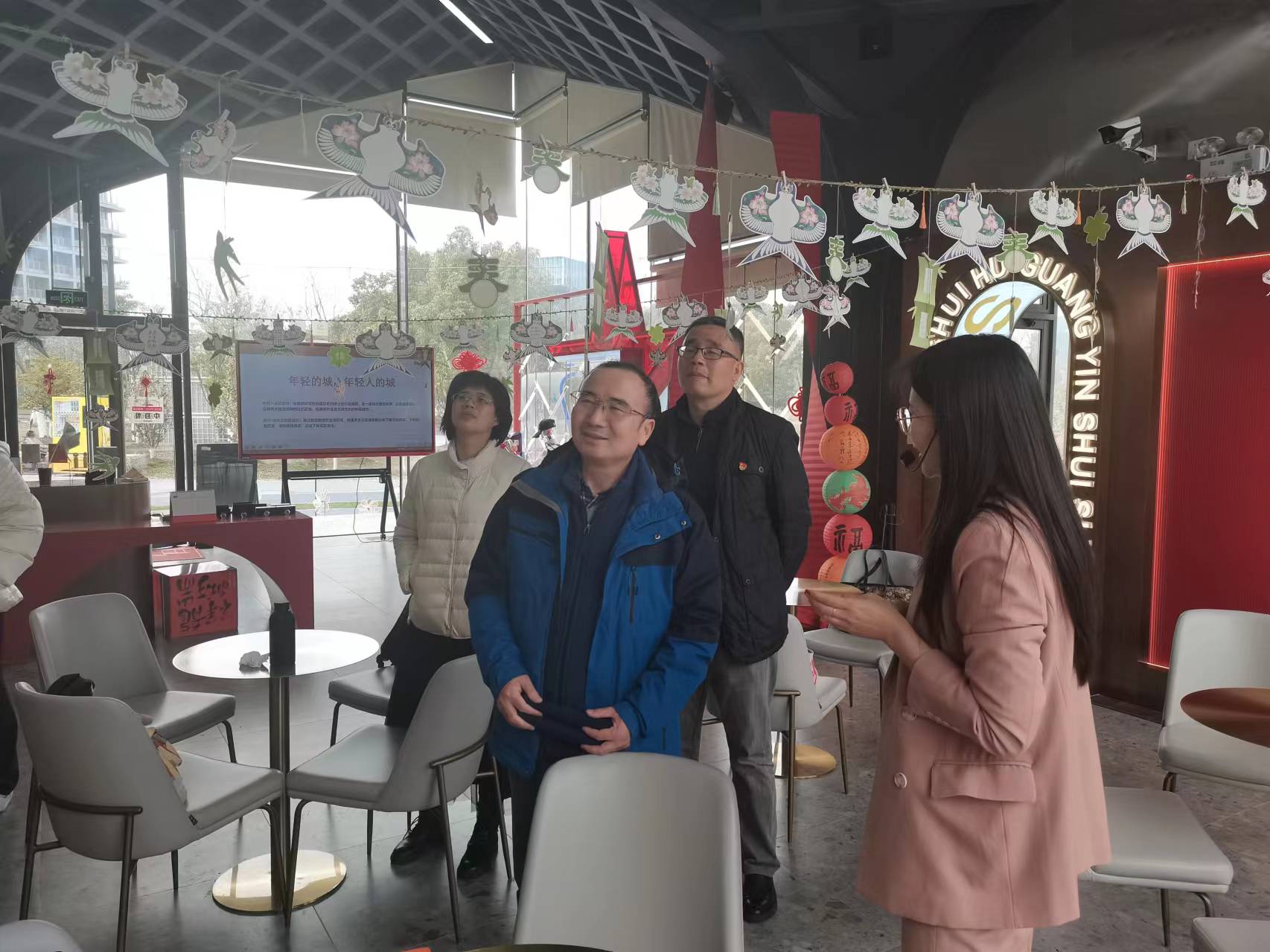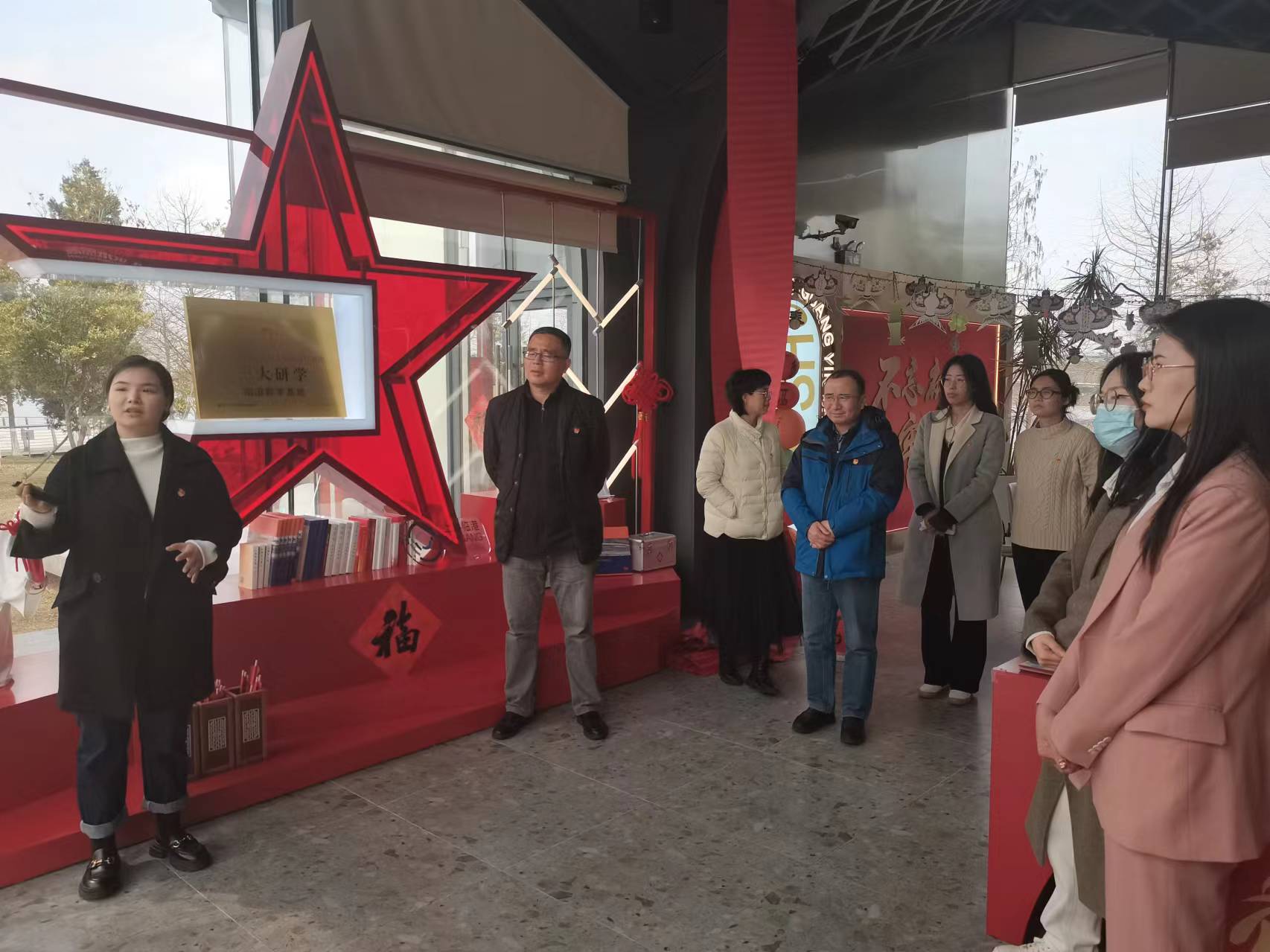 3月7日,beat365正版唯一官网党委书记陈国初、党委副书记卿海龙带队赴首个“一大研学”教学基地——“滴水•湖光”党群服务站参观学习,beat365正版唯一官网党支部书记、辅导员、专职组织员参加。在临港管委会办公室邱晓慧和服务站刘骏的带领下,通过聆听讲解了解红色IP“一大文创”等品牌,理解中共一大纪念馆所属品牌“一咖啡”所蕴含的革命故事,沉浸式体验“XR元宇宙场景”和“IP数字人”等前沿科技。