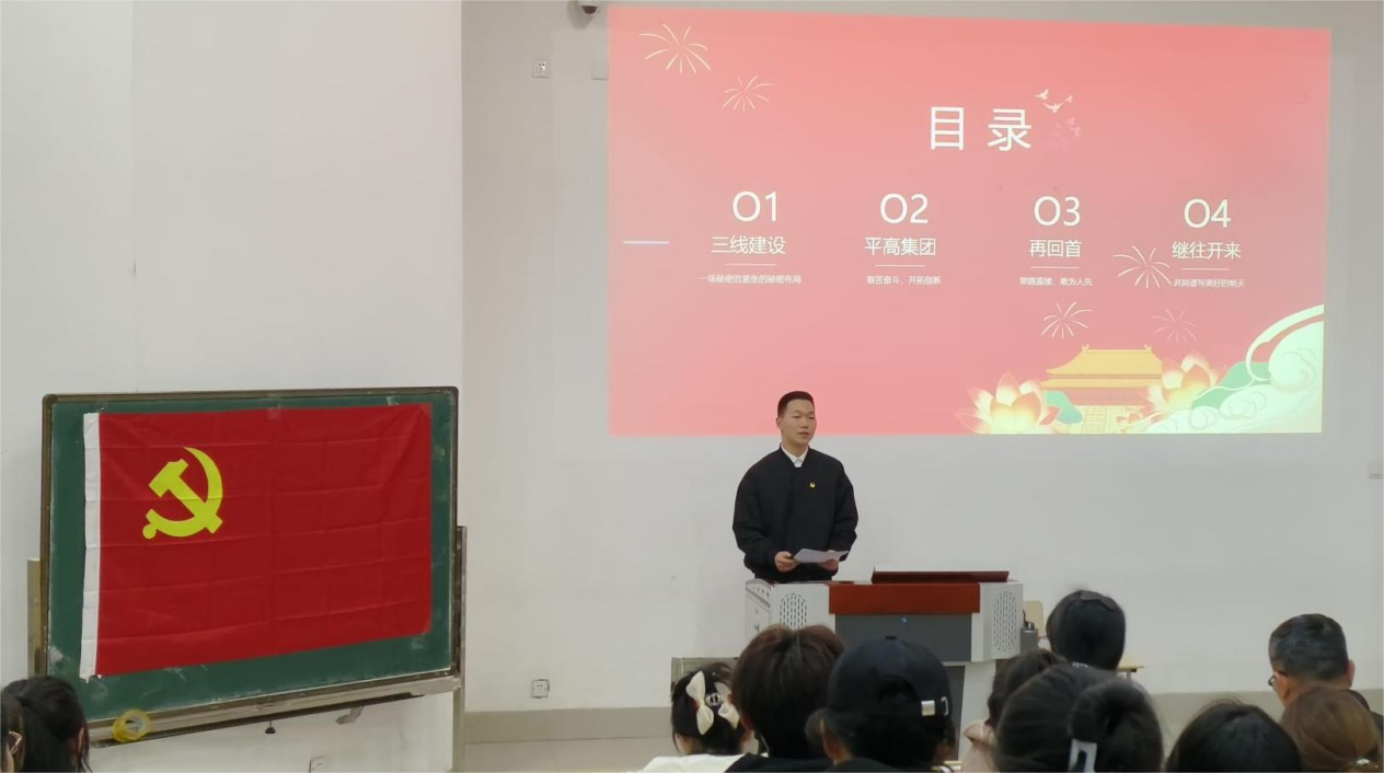 结业典礼在庄严肃穆的国歌声中拉开序幕,电气2113刘亚卓、自动化2212鞠安鑫、电2362赵康伟分别代表小组分享了学习和体会。他们结合假期中对平高集团、中国航发贵州航空动力有限公司等三线建设企业的线上线下调研,从新中国工业发展史中感悟红色精神和红色基因,从三线建设校友刘根根等人的故事中,体悟三线建设者“献完青春献终身,献完终身献子孙”的精神。
