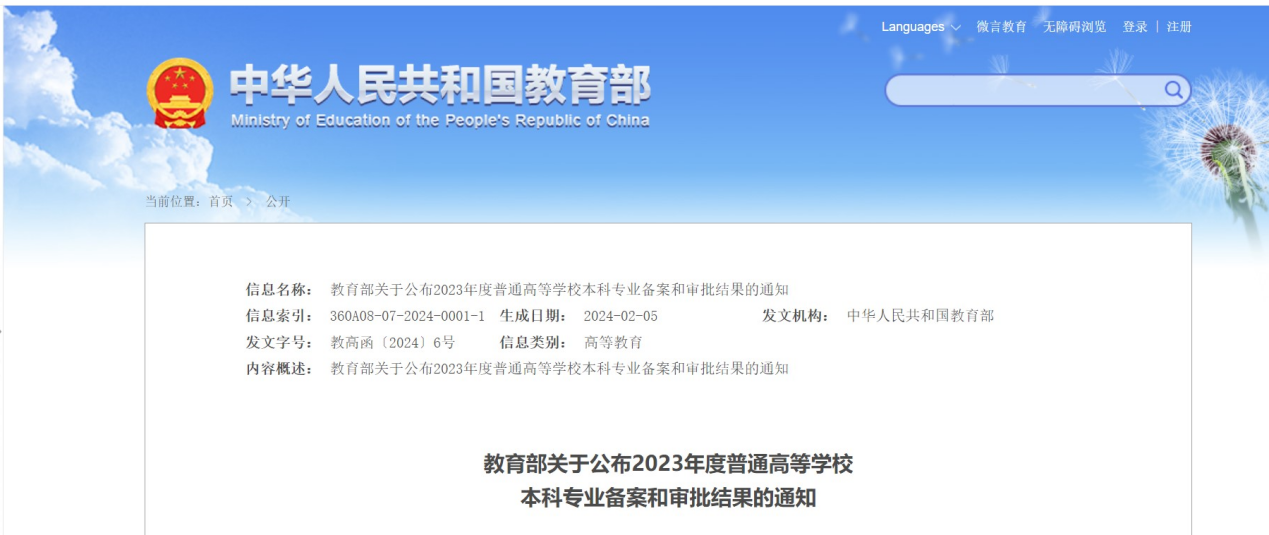 近日,教育部下发《教育部关于公布2023年度普通高等学校本科专业备案和审批结果的通知》(教高函〔2024〕6号),公布了2023年度普通高等学校本科专业设置备案和审批结果,beat365正版唯一官网申报的“机器人工程”本科专业成功获批。
