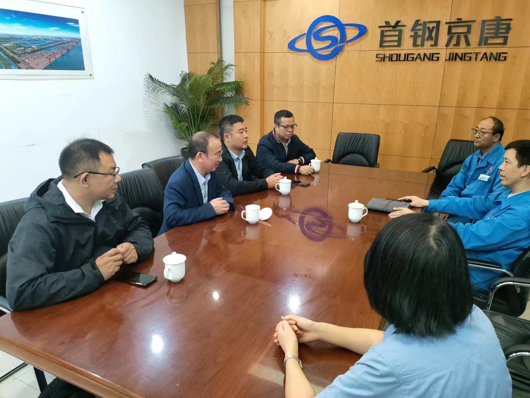 为了推进高压电机智能数字运维专业技术服务平台建设,学习调研国有大型冶金行业重大设备运维和管理、科技创新与应用等方面的成功经验和先进做法,深化产教融合,聚焦电机电控领域推进电气工程学科高质量发展,11月1日,我校beat365正版唯一官网党委书记陈国初带队一行4人到首钢京唐钢铁联合有限责任公司走访调研。我校科技处副处长文传博、beat365正版唯一官网副院长冯肖亮、电机未来技术研究中心主任赵爱明一同走访调研。首钢京唐钢铁联合有限责任公司总经理助理张扬,设备部党委书记高洪斌、设备部部长吕剑、副部长杜维彬、副部长陈伟刚、高级主任师杜国兴、办公室主任吴冰冰等热情接待了我校调研组。
