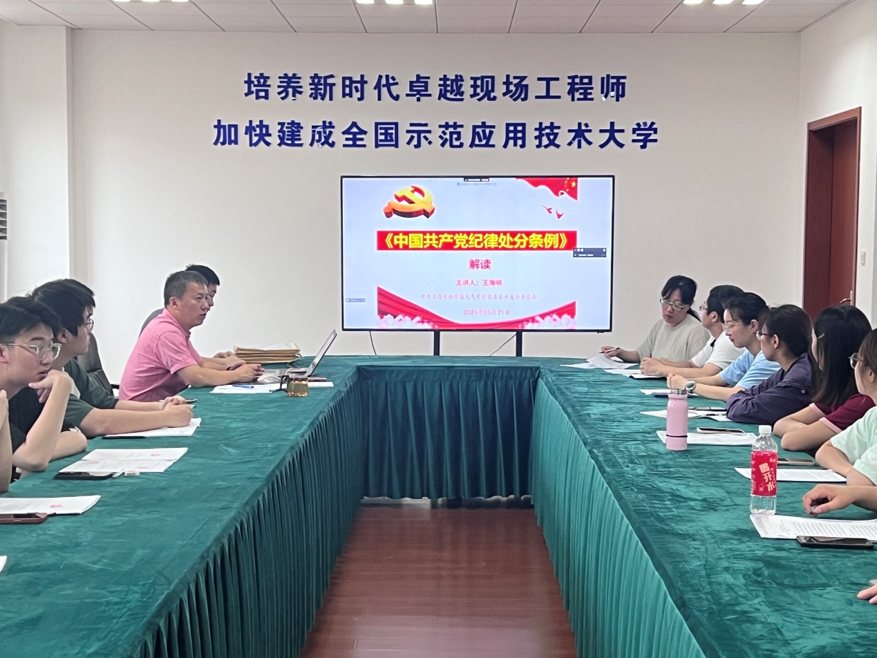 为落实学校党纪学习教育实施方案,进一步加强党员干部的纪律意识,提升党性修养,深刻理解《中国共产党纪律处分条例》的修订意义及内容。近日,beat365正版唯一官网第六党支部在电气楼410举办学习纪律条例专题党课,党课聚焦《条例》的修订背景、内容要点及其在当前全面从严治党工作中的重要作用,旨在引导党员干部筑牢纪律防线,推动学院党建工作再上新台阶。