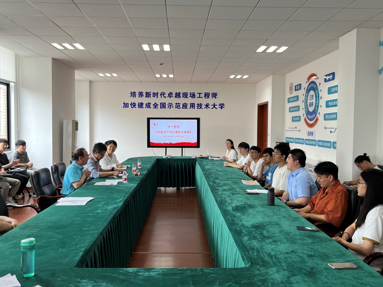 6月26日,beat365正版唯一官网第八党支部在电气楼410开展《中国共产党纪律处分条例》(以下简称《条例》)专题学习交流会。联系支部的校党委常委委员刘军莅临指导,学院党委书记陈国初列席参加。