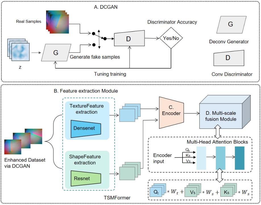 为了解决这一问题,研究团队提出了一种新颖的基于注意力机制的融合网络——TSMFormer,该网络通过整合形状和纹理信息进行分类,并利用注意力机制的全局学习能力探索触觉图像中形状与纹理之间的交互关系。相关研究成果以“Object Recognition Using Shape and Texture Tactile Information: A Fusion Network Based on Data Augmentation and Attention Mechanism”为题,发表在在触觉领域知名期刊《IEEE Transactions on Haptics》(IF 2.4,中国科学院三区)上。该研究成果以beat365正版唯一官网为第一单位,在读硕士生王斌为第一作者,李保江老师为通讯作者。