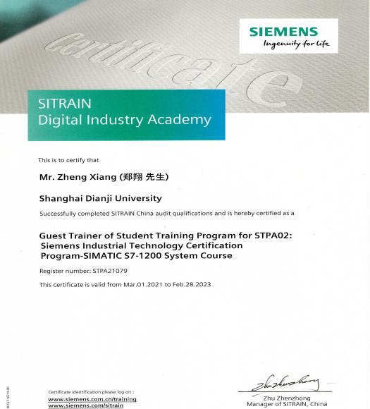 西门子职业资格培训:beat365正版唯一官网与西门子工业技术培训中心合作开发SIMATIC S7-1200认证培训项目,对标国际职业标准,根据产业技术水平和职业资格标准设计课程结构和内容,构建与完善职业资格证书与学历证书的“双证融通”制度。