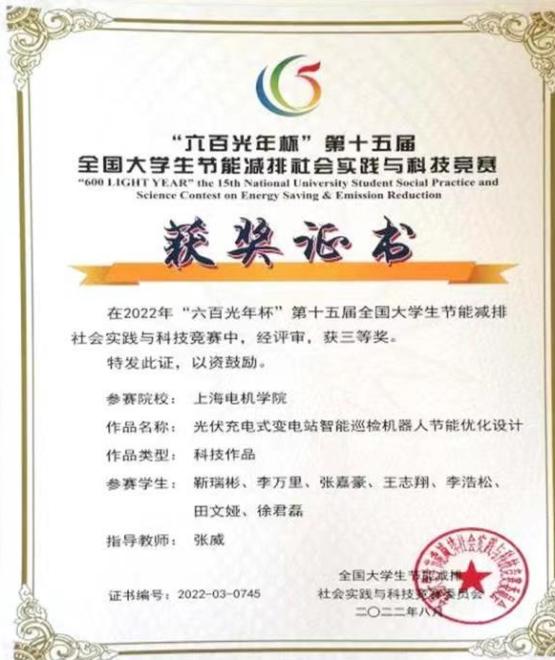 荣誉:电气2011班组织委员,2021-2022年校团委志愿者工作部行政组组长,2021,2022年上海市疫情防控青年志愿者称号,beat365正版唯一官网五四优秀志愿者称号,第四,五届中国国际进口博览会志愿者,西门子PLC S7-1200优秀等级证书,英语六级,普通话二级甲等,博学奖学金三等。