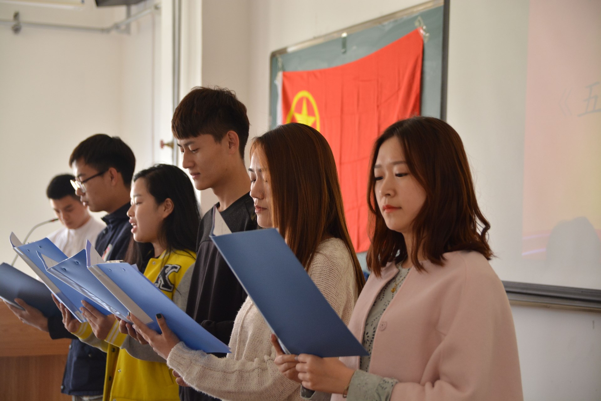 2014级播音12组的团会,首先由同学献唱弘扬正能量的歌曲《红旗飘飘》;其次是正式庄重的朗诵《五四,我们的节日》,展示了青年人朝气蓬勃的精神面貌;接下来由全体团员重温入团誓词,大家握紧右拳,高高举起,气宇轩昂;最后,辅导员赵聆钧老师表示:“同学们正处于人生最好的阶段,希望大家不要荒废大学四年的时光,找到自己喜欢或有意义的事。”