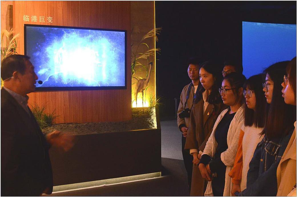 首先,在展示厅内,南汇新城社区党校施斌老师为上《历史长河中的那抹红》的情景党课。通过讲解临港发展的历史引申出临港在历史长河中的感人故事和抗战时期的红色革命精神,其中包括南汇县第一县委书记周大根的感人事迹还原泥城暴动建立中农红军22成立了南汇县保卫团第二中队的历史故事,打响浦东抗日第一枪的汇角战役等红色革命故事。通过施老师的生动讲解,带领同学们回顾了临港发展的昨天,同学们不禁感慨这片土地上孕育了这么多无怨无悔,一心为国的志士仁人。